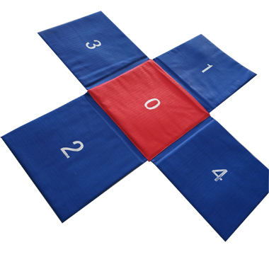 Consists of five square mats. Each cushion is 500mm long and 15mm thick.