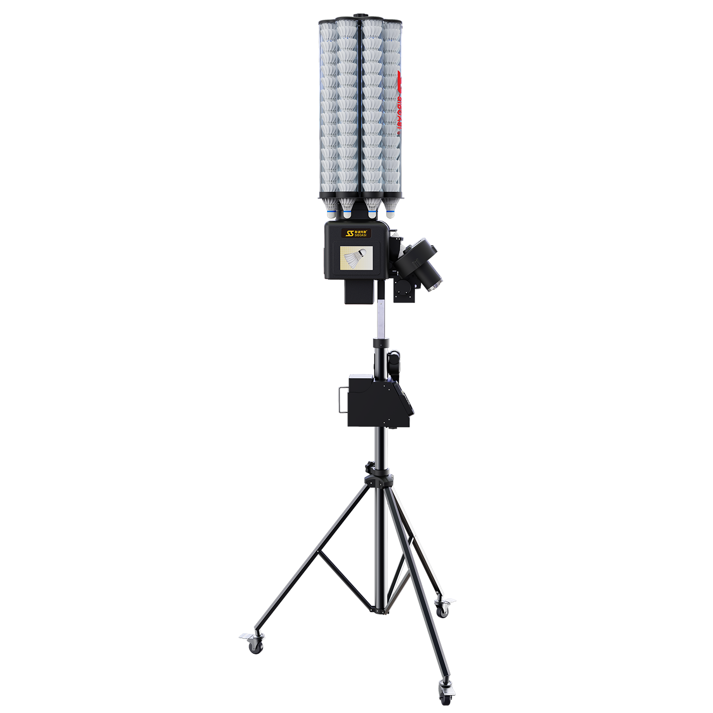 编号:28B2300A 品牌:斯波阿斯 1.智能遥控器或连接手机APP操控,一键启动运行,轻松畅享运动 2.智能感应发球,高低自由设置,自定义发球速度、频率、角度等 3.14个智能落点编程(每个点最多设置10个球) 4.4种交叉球模式可选 5.左右垂直可调节60个档位 6.配置大容量收纳筐和内置锂电池,提高训练效率